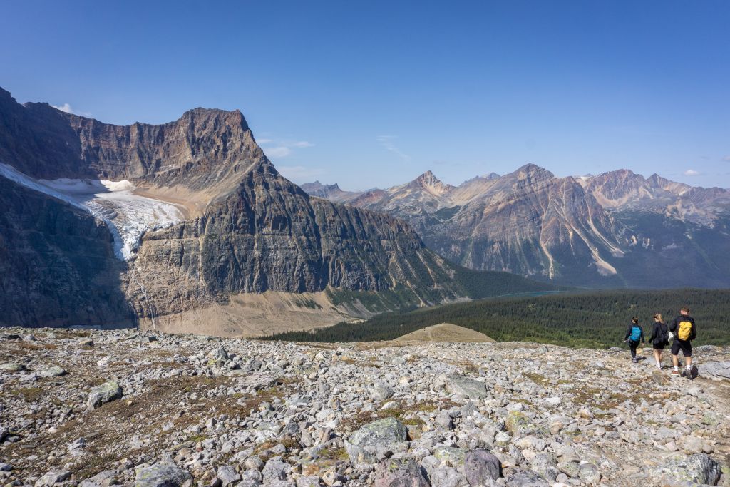 Noch nichts von der Katastrophe im Folgejahr ahnend, erwandern wir uns die Umgebung von Jasper. Wunderschön ist der Blick auf den Mount Edith Cavell mit dem Gletschersee zu seinen Füßen, aber noch besser wird der absolute 360°C-Blick eröffnet sich erst weiter oben. Und noch weiter oben.